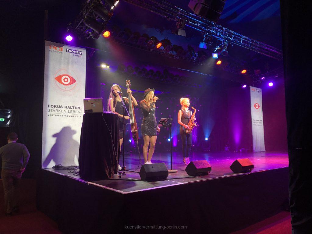 Vertical Saxophon On the occasion of a Berlin company party we could inspire the guests with our vertical saxophone and acrobatics show. Our LED percussion show convinced immediately so that all guests danced the same. The animation with the color changing LED drum was special, as the new technology allows the artists to act among […]