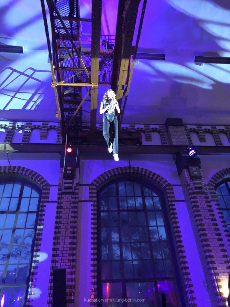 Vertical Saxophonshow Flying saxophone show for 100 years dbb in Wasserwerk Berlin delighted the guests and entertained with the flying saxophone show as the highlight of the evening. Titles like Skyfall by Adel and well-known party as well as DJ titles are included in the program. Flying musicians are a special highlight and only possible […]